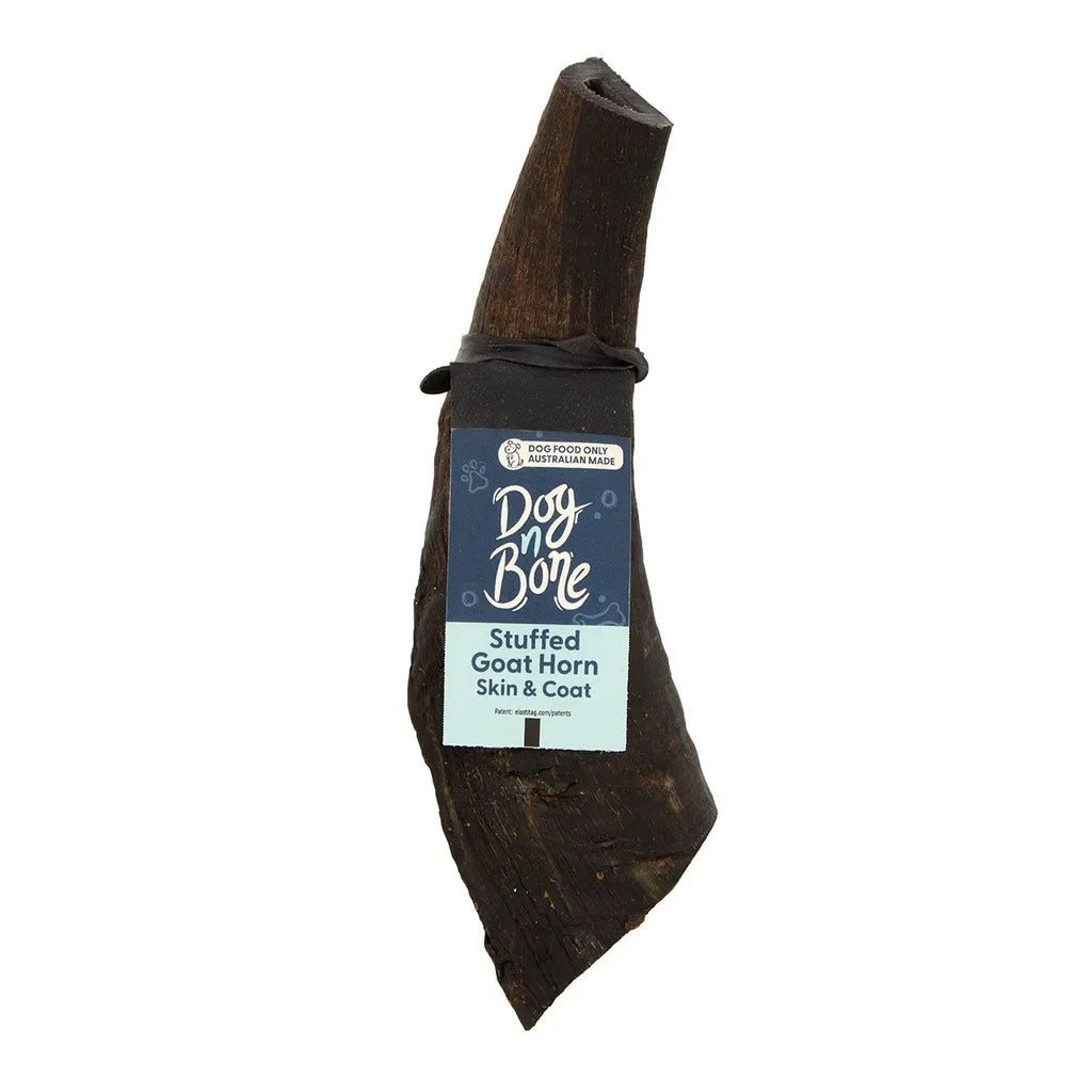 Dog n Bone Stuffed Goat Horn Skin & Coat is a longer-lasting treat designed for occasional and functional treating, offering hours of entertainment for your dog.